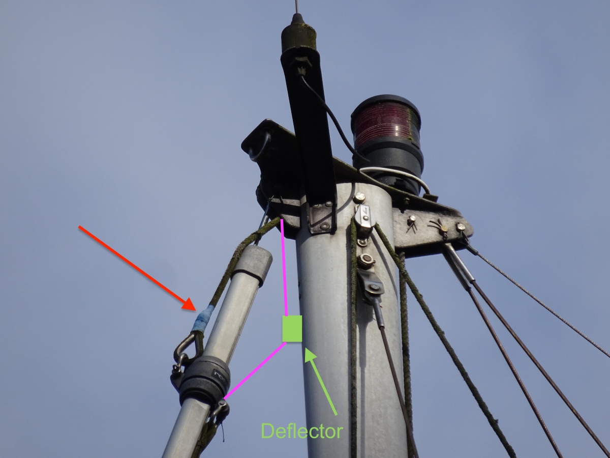 To prevent halyard wrap from happening a defector is required. This effectively pulls the halyard exit down the mast a little and increases the angle between the halyard and the stay preventing it from being able to wrap around. A halyard deflector costs around £20-£40 and can be fitted without unstepping the mast.